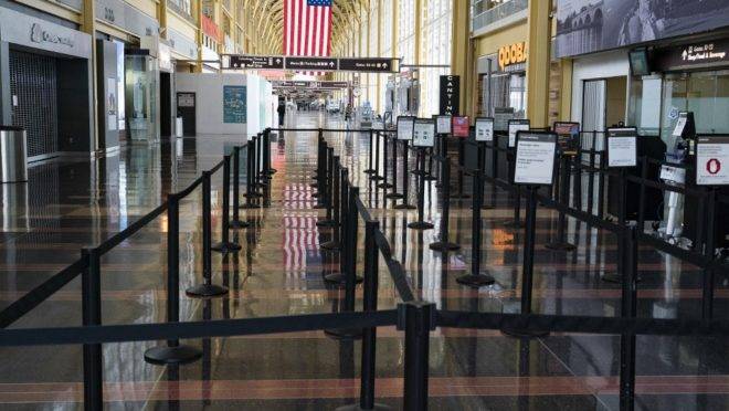 A contração aguda reflete a paralisação das atividades nas últimas duas semanas de março, quando milhões de americanos perderam seus empregos em consequência das medidas para tentar conter o vírus.