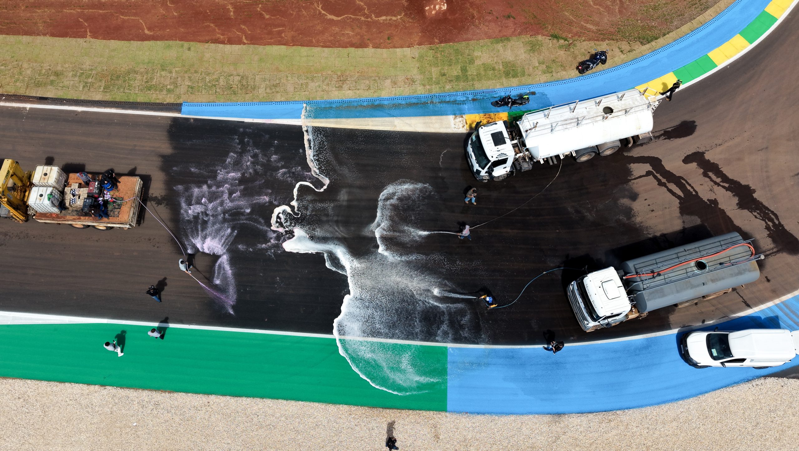 Goiânia vive uma corrida contra o tempo para deixar tudo pronto no Autódromo Internacional Ayrton Senna para a etapa brasileira do MotoGP que começa no dia 20 de março. A poucos dias do início da prova, há uma grande movimentação das equipes trabalhando nos ajustes finais para garantir segurança e alto desempenho durante o evento. Um dos principais focos nesta reta final é a descontaminação e limpeza da pista, processo que utiliza mais de 3 mil litros de produto desincrustante que é aplicado para remover resíduos como poeira, lama, fuligem e outras partículas.